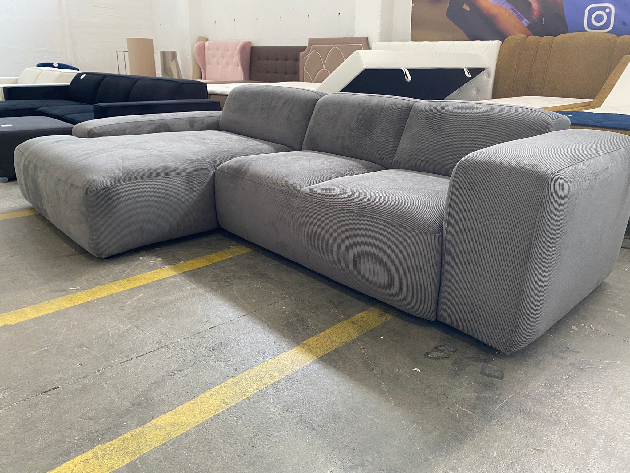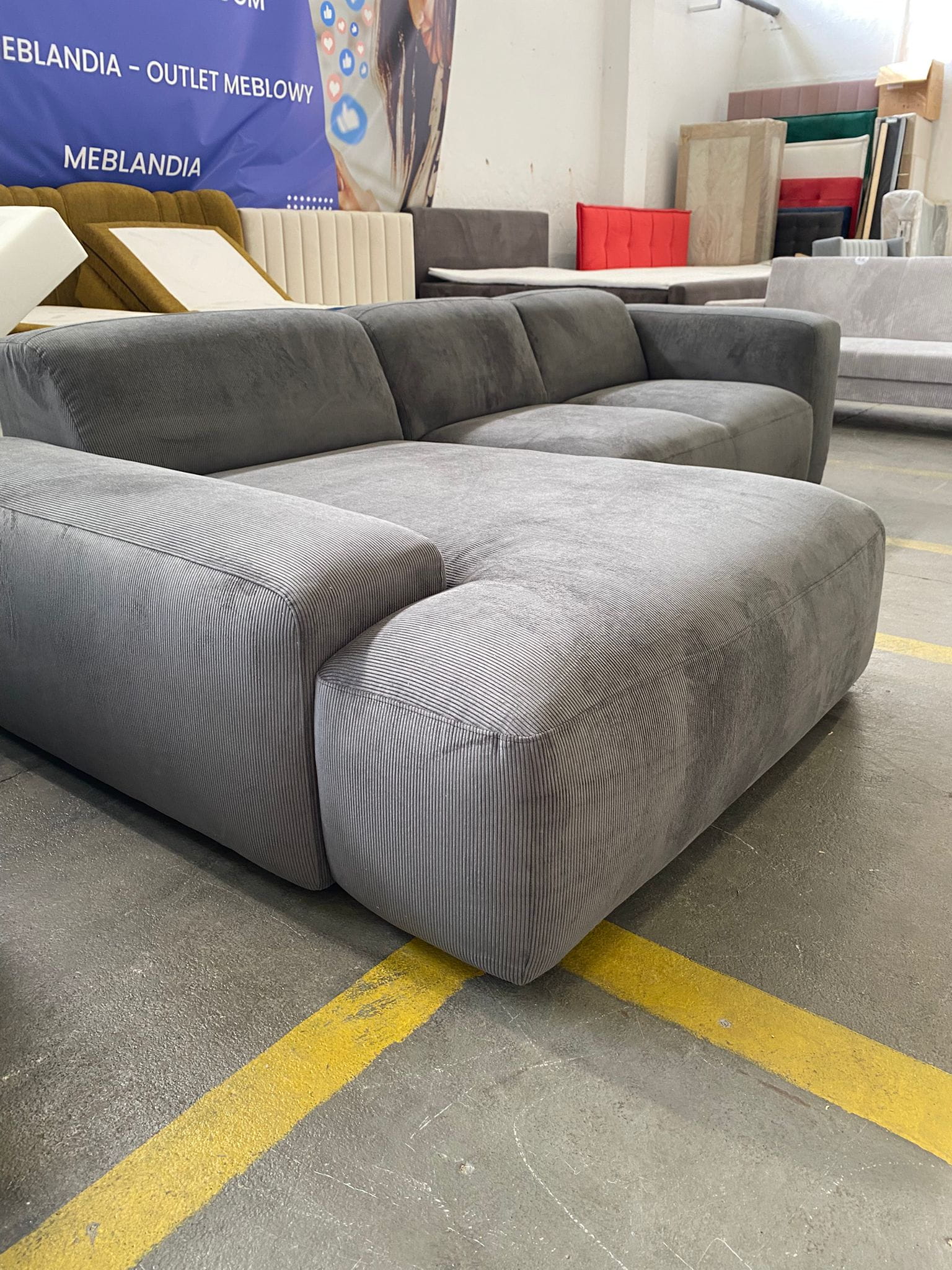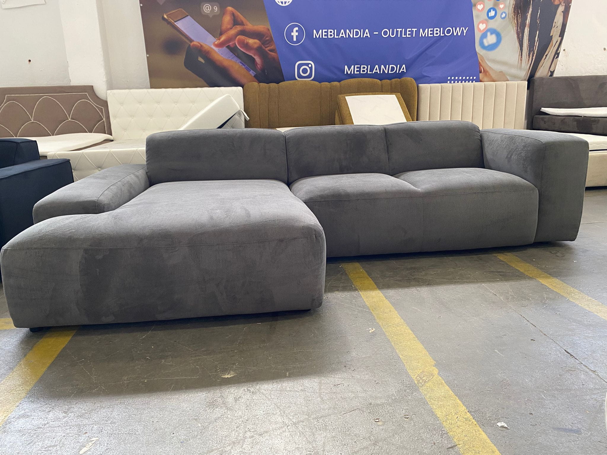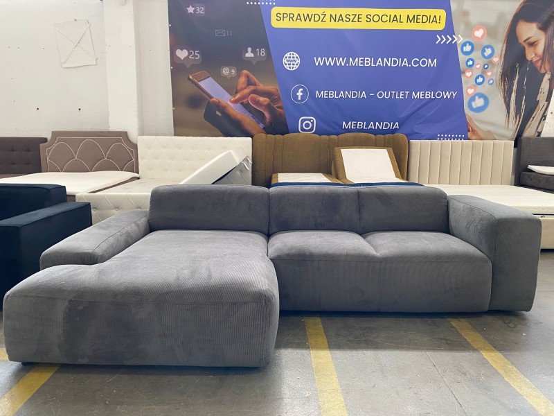 Kształt: Narożnik L-kształtny, składający się z dwóch modułów (sofy i głębokiego szezlonga/otomany).
